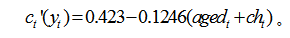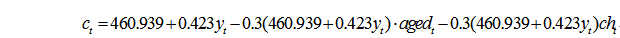 以模型(10)为例,将估计得到的参数代入式(8),可以得到含人口年龄结构的消费函数: