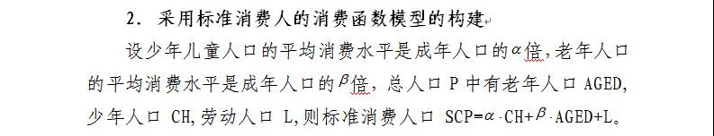 第一步,假设15-64岁的成年人为一个标准消费人,将15-64岁的成年人的消费水平看作标准消费人的消费水平。