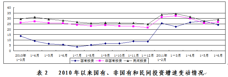 4.国有和非国有投资均保持较快增长。上半年,全省非国投资增长26.8%,比1-5月提高1.2个百分点,其中民间投资增速为29.0%,比1-5月提高1.5个百分点;国有投资增长24.0%,比1-5月回落3.6个百分点。非国有投资增速比国有要快2.8个百分点。