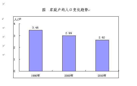 据浙江省第六次人口普查,2010年,浙江的家庭户为1885.37万户,比2000年增加了440.40万户。伴随着家庭户数量增长的是家庭户人口规模缩小,2010年家庭户平均规模为2.62人,比2000年的2.99人减少了0.37人,与全国的3.10人相比少了0.48人。也就说,三人户或二人户的家庭户规模已经成为我省家庭户的主体。