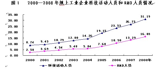表1 2000—2008年规上工业企业科技活动情况