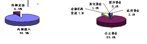 2.R&D财力资源情况。2008年,规模以上工业R&D经费内部支出为274.13亿元,分别比2000年和2004年增长10.5倍和2.1倍,2004—2008年均增长33.1%。R&D活动经费内部投入中大中型企业占七成。2008年,大中型工业企业R&D经费内部投入192.52亿元,占70.2%,比2004年增长2.1倍。