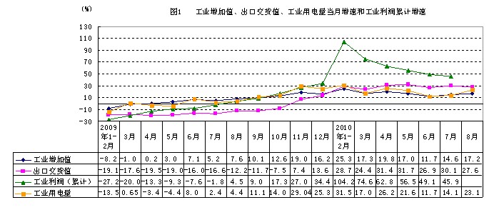 8月份,浙江经济继续保持较快增长,工业生产及用电增速加快,投资增长平稳,汽车销售再创新高,出口有所回落,财政收入增速放缓,支出增速加快,当月贷款增量回升,CPI、PPI同比均略有回落。