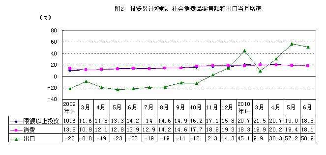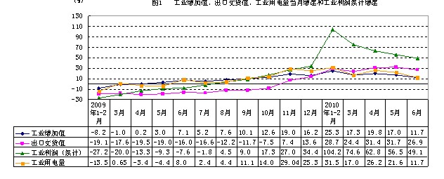 从工业、投资、消费、出口、财政收入等主要经济指标的增长态势看,一季度增速均在20%以上;二季度开始在去年同比基数逐渐抬高的影响下,增速逐月有所回落。但从两年平均看,上半年大多数经济指标的年均增速要高于一季度,表明经济回升上行的势头仍在延续。