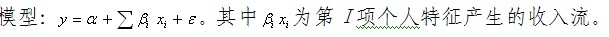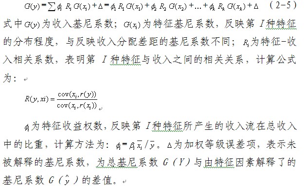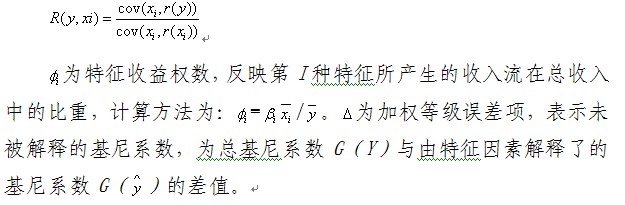 在第一步中,首先要解决的是选择合适的不平等指标。因为特征因素大多使用的是定性变量,只能通过虚拟变量形式引入收入回归方程,但泰尔熵指数的计算过程中需要取对数,要求不能存在0,所以我们采用基尼系数收入来源分解方法。由于基尼系数的计算须使用收入的原始观测值,那么回归模型的解释变量也须是收入的原始观测值,因此在模型的选择上多采用多元线性回归