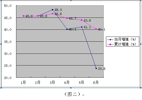 3.房地产走势对相关商品消费的影响。随着国家对房地产调控政策效应的显现,与房地产高度相关的商品消费增速也出现回落,从限上企业建筑及装潢材料类零售额来看,一季度为1.7亿元,同比增长34.9%,上半年为3.8亿元,累计增速为25.8%,零售额累计增速出现明显回落。