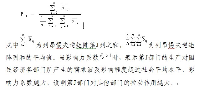 影响力系数是指某一部门增加一个单位最终产品需求时,对国民经济各部门所产生的生产需求波及程度。计算公式为: