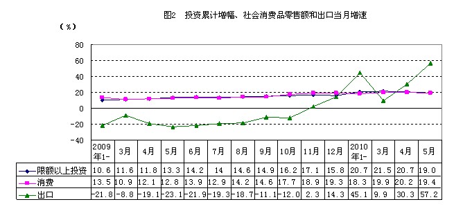 5月份,我省工业生产、投资、消费增长较快,但增速比上月有所回落,出口规模创历史新高,财政收支增长加快,存贷款增速略有回落,居民消费价格继续走高,生产价格高位走平。