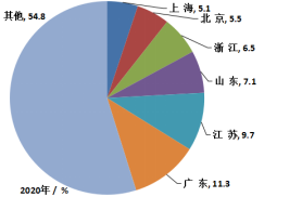 4.服务业占全国比重位居前列。1978年,浙江服务业增加值占全国服务业的比重为2.6%,列上海、江苏、广东、山东、北京等省市之后。改革开放后,浙江服务业突飞猛进,在全国各省市中位次步步攀升。2020年,浙江服务业增加值占全国服务业(553977亿元)的比重为6.5%,在全国各省市的位次从1978年的第13位上升至第4位。