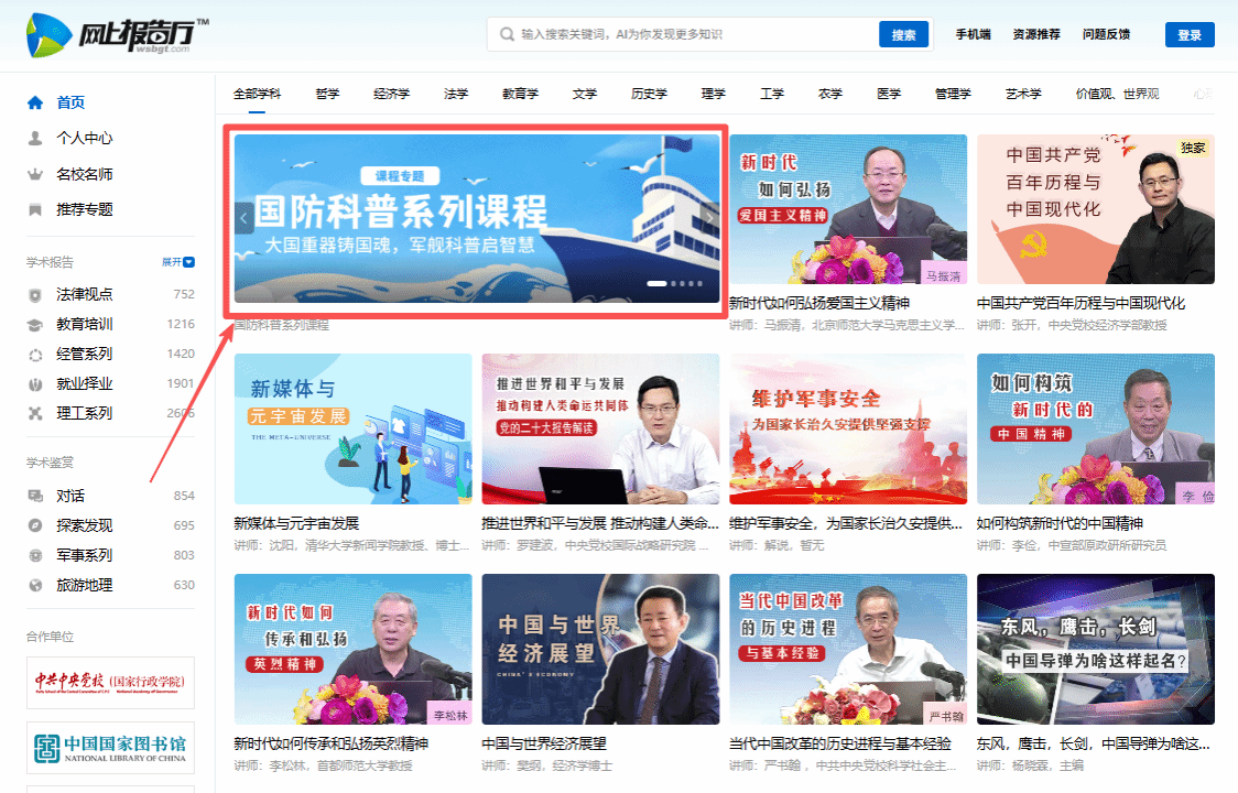 1. 网页端,访问http://zjsru.cwkeji.cn:8081/ermsClient/eresourceInfo.do?rid=14,点击首页专题轮播图即可查看完整专题课程。