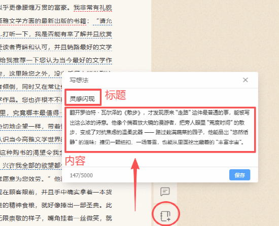 选中内容点 “写想法”,观点直接 “钉” 在文段上,下次重读立刻回忆起当时的思考: