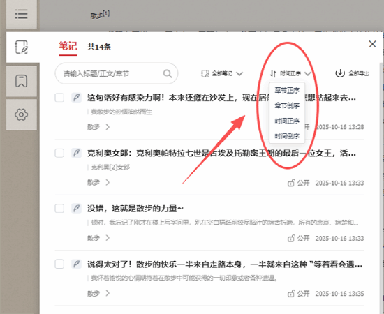 按 “时间倒序” 快速回顾今天的思考,按 “章节正序” 跟着书本逻辑梳理脉络;