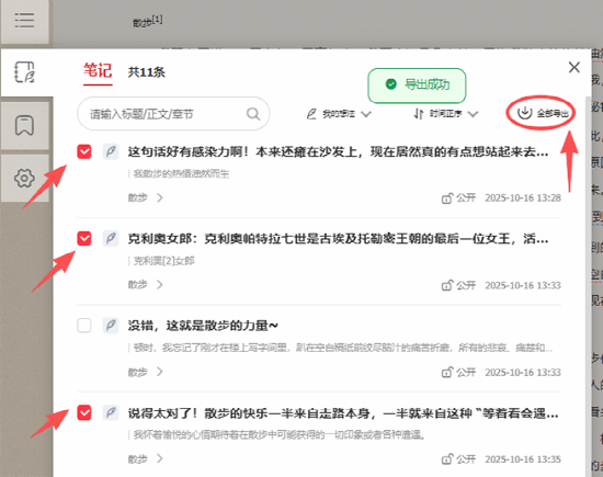 写读后感、做报告时,勾选所需笔记导出直接用,效率翻倍。