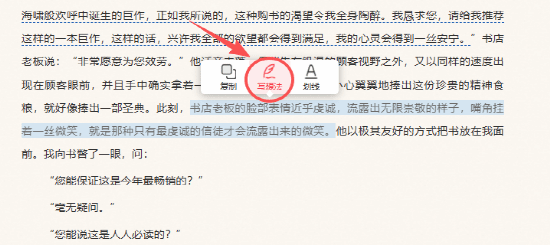 选中文段点“划线”,一键标记,翻书时一眼找到重点,再也不用对着满屏文字 “大海捞针”