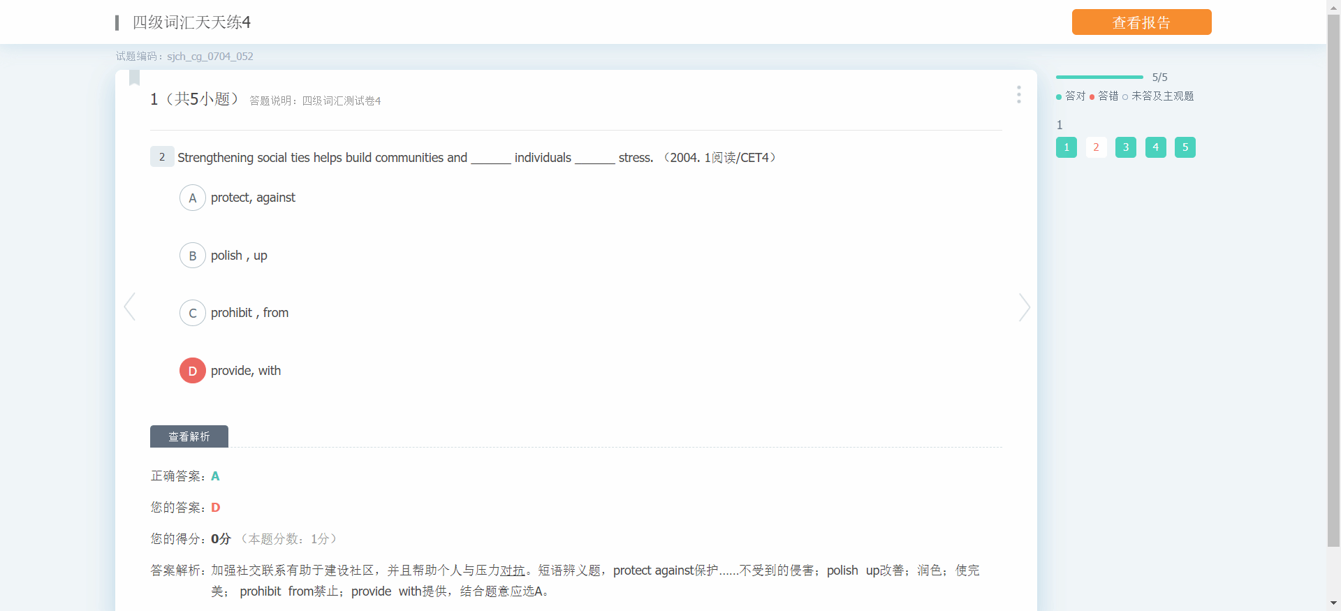 还原真实考场环境,帮助考生提前适应答题节奏,答题后自动生成个性化报告,标注正确率较低的题型与高频错误知识点,清晰呈现薄弱环节,为针对性补弱提供方向。