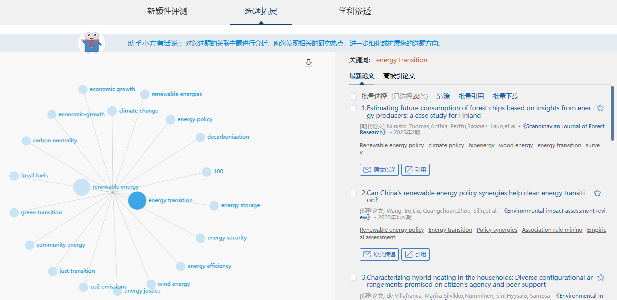 试想这样一个场景:一个研究生想要寻找有创新性、能发表、可深耕的外文选题,全新外文选题工具如何具体赋能他的科研?