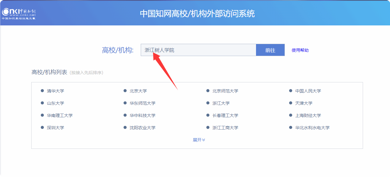 (2)点击“入口2【via CARSI】”进入,输入“浙江树人学院”,通过学校统一身份认证登录