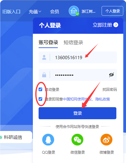 (2)登录CNKI中国知网的个人账号(没有账号的请先注册)