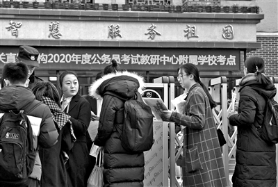 本报讯(记者 解丽)2020年国家公务员考试昨日拉开帷幕。北京青年报记者了解到,本次国考计划录用2.4万余人,共有143.7万人通过资格审查,通过资格审查人数与录用计划数之比约为60:1。与历年不同的是,昨日下午的申论题首次取消大作文,华图教育专家表示,这种“岗位职责干什么命题考什么”的方式更加务实严谨,会相应淘汰一些“两耳不闻窗外事,一心只读圣贤书”的“学者型”考生。