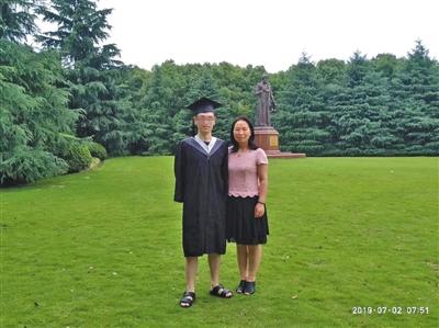 2019年6月,原梦园陪儿子拍本科毕业照。本版照片均为受访者供图