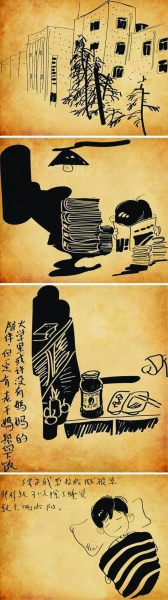 扬子晚报记者联系上这组图画的作者、24岁的胡义翔,他是吉林大学艺术学院大四的毕业生,“要毕业了,拿起支画笔,留下点东西。谢谢网友喜欢。”(王赟)