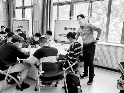 山东财经大学副教授宋浩在《线性代数》的课堂上指导学生。光明图片