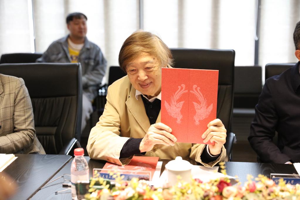 冯骥才在天津大学“非物质文化遗产系列教材”编写启动会上向线上参会的编委会委员颁发聘书。