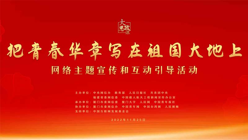 中央网信办、教育部、人民日报社、共青团中央、福建省委网信委、中国载人航天工程新闻宣传办公室主办的“把青春华章写在祖国大地上”大思政课网络主题宣传和互动引导活动25日在厦门大学举行。活动上,人民网、中国青年报社、中国青年网联合主办的“大思政课”云平台正式上线。