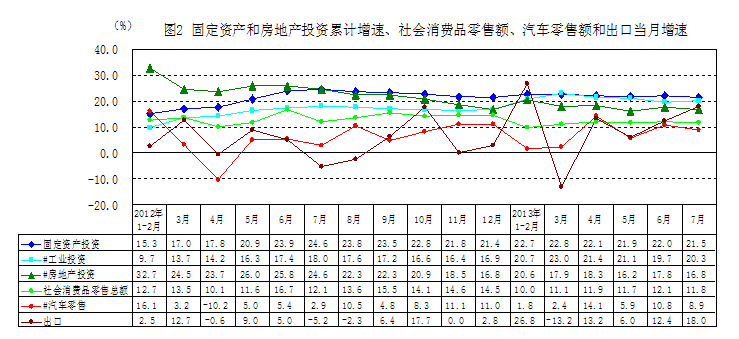 1-7月,浙江经济总体保持平稳运行态势,月度出口额再创历史新高;消费基本稳定;财政收入增幅继续回升,重点支出保障有力;CPI涨幅回落,PPI降幅减小。但由于7月份天气异常高温,部分工业企业让电于民,建筑企业减少户外作业时长,以及去年基数提高,工业、投资等增幅比上月略有回落。