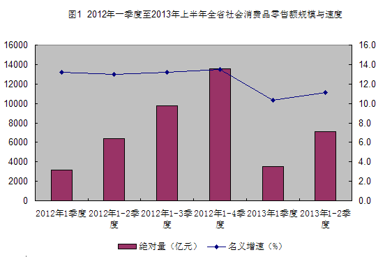 综合各方面因素,特别是下阶段各级党委政府将更加重视扩大消费工作,省商务厅已经在牵头制定《进一步做好扩大消费工作的意见》,消费市场将会有更加良好的发展环境,预计下半年消费市场将延续上半年稳定增长的势头,但要完成全年社会消费品零售总额增长13%的目标,需要付出更大的努力。