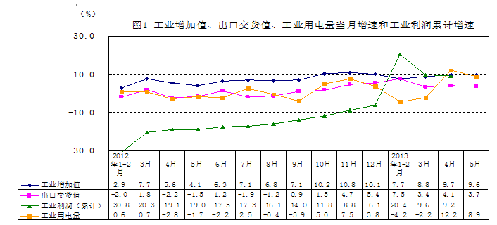5月份,浙江经济运行继续保持平稳向好的运行态势。工业生产和用电量增长有所加快,投资保持较快增长,消费市场稳中有升,当月出口额为今年次高点,财政收入增长较快,新增存贷款同比多增,居民消费价格温和上涨,工业生产者价格继续下降。