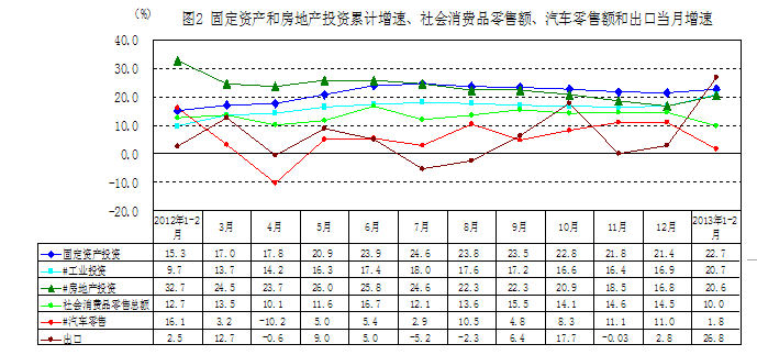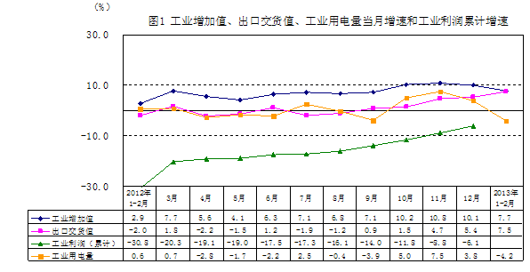 2013年,全省上下以实现一季度“开门红”为目标,抓紧各项工作的启动和落实,取得了成效:经济开局良好,主要经济指标延续了去年下半年以来的回升态势。1-2月,工业生产、出口持续回升,节能压力增大;投资较快增长,商品房销售继续升温;消费市场稳定增长,住宿餐饮零售额下降;外贸出口大幅增长;财政收支平稳增长;新增存贷款同比多增;居民消费价格总水平基本稳定,工业生产者价格降幅继续缩小。