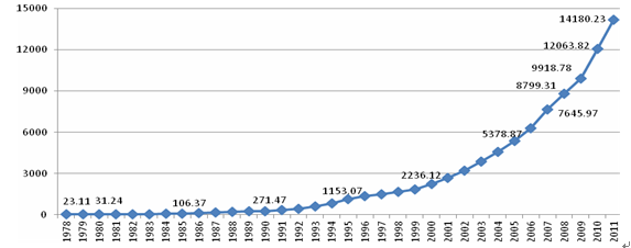 图4 1978-2011年浙江省服务业增加值(亿元)