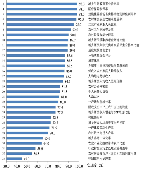 图3 2011年浙江省统筹城乡发展水平评价体系33项指标实现度