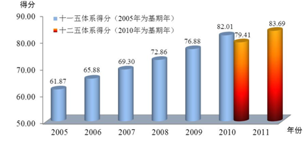 图1 浙江省2005—2011年统筹城乡发展水平评价得分