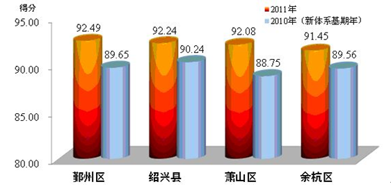 慈溪市 | 88.96 | 6 | 86.58 | 上虞市 | 80.12 | 26 | 76.72 | 淳安县 | 68.96 | 48 | 65.59 |
