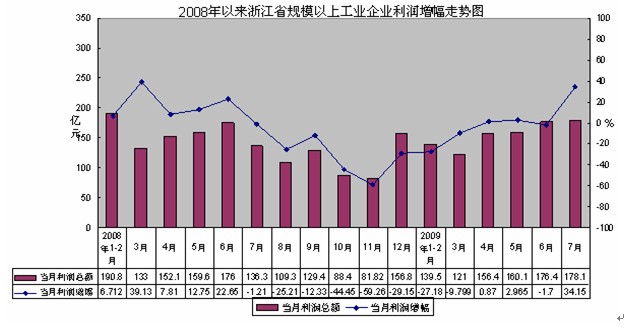 1-7月,全省规模以上工业企业利润总额931.4亿元,与去年同期相比虽仍有所下降,但降幅由一季度的20%、上半年的7.6%进一步缩小至1.8%。其中,7月份利润总额178.1亿元,同比增长34.1%,增幅比6月提高35.8个百分点。7月份工业利润快速回升的主要原因有: