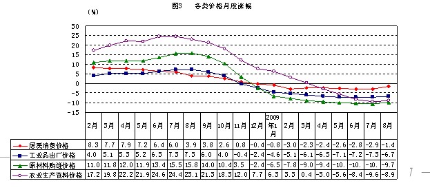 居民消费价格涨幅(%) | -2.3 | -1.4 | 1.1 | -2.9 | -2.8 | -2.6 | -2.4 | -2.3 | -1.9 | |||