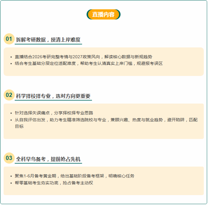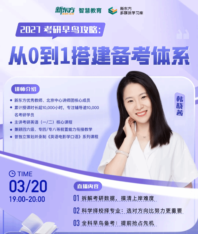 新东方多媒体学习库推出“2027 考研早鸟攻略:从0到1搭建备考体系”线上直播,旨在帮助考生理清复习思路、找准备考方向,从起步阶段就做到精准发力。